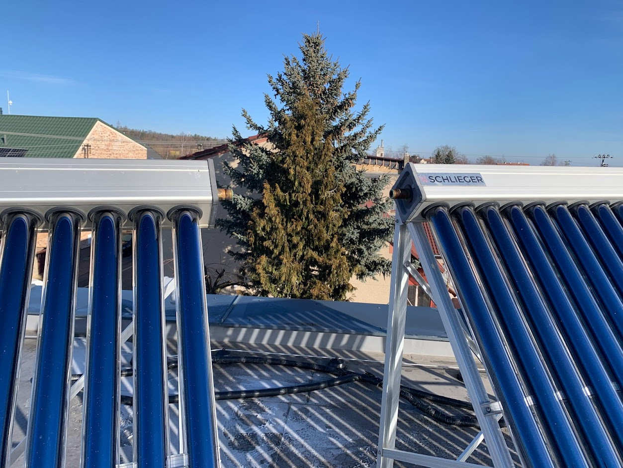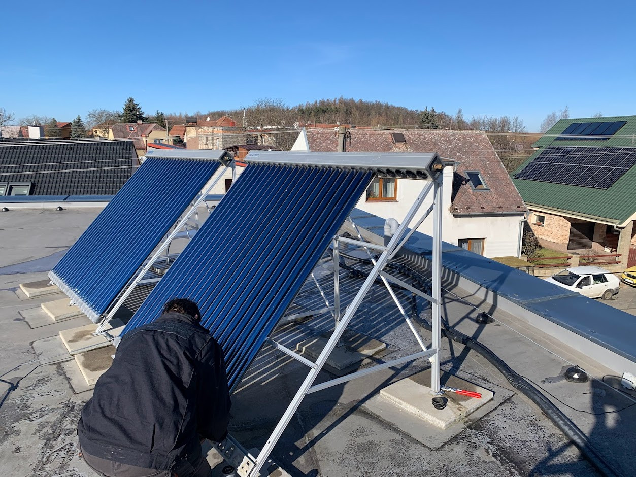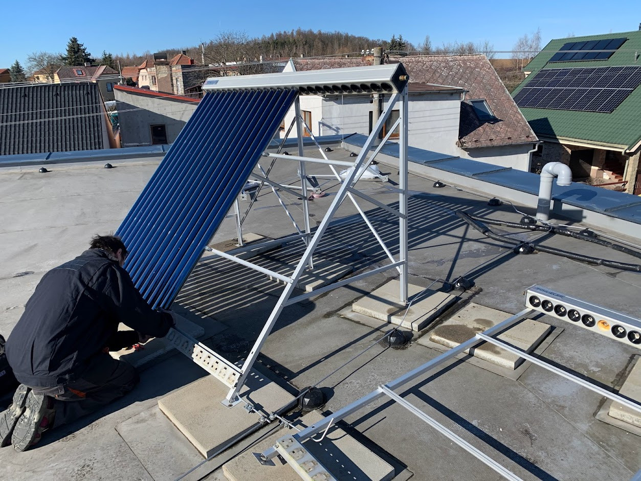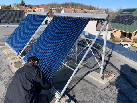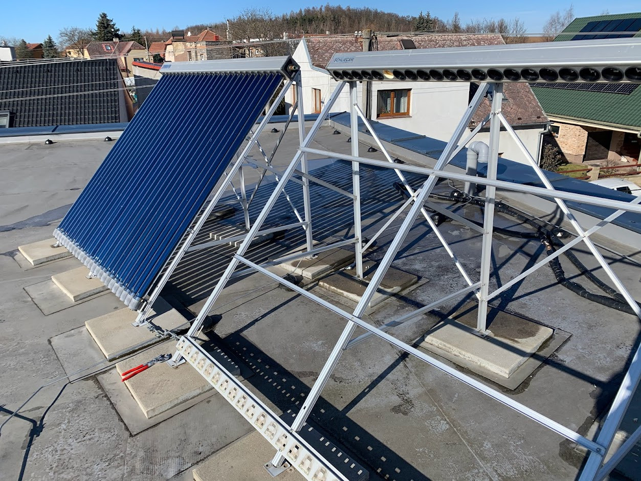 - V následujících dnech proběhla profesionální montáž nového solárního systému, který bude fungovat. Vybrali jsme špičkové evropské solární deskové ploché kolektory o absorpční ploše 2x 2.5 m2