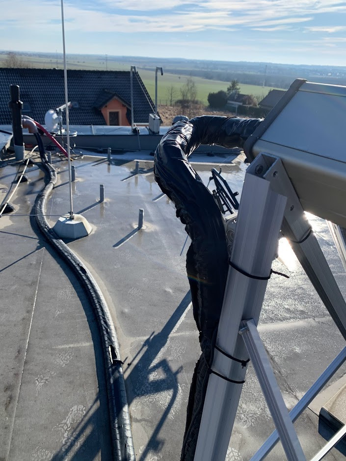 - Dozvěděli jsme se, že instalaci prováděla parta cizojazyčně hovořících řemeslníků. S tímto tvrzením se setkáváme čím dál častěji a bohužel to dopadlo jako vždy. Od uvedení do provozu byly se solárním systémem samé problémy. Instalace solárního systému a jeho komponent byla provedena amatérsky. Na střeše rodinného domu se povalovalo potrubí, instalace součástí solárního systému je v rozporu s instalačním manuálem. Uchycení solárních kolektorů bylo doslova na pár dlaždičkách, na spojovacím materiálu už více ušetřit nešlo, konstrukce nebyla papírová, byl to nějaký 1.5mm hliník :) . Vlastně za nás je pozoruhodné, že takový systém na domě vůbec 3 roky vydržel a nevzal ho vítr nebo se samovolně nesložil.