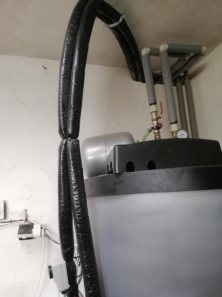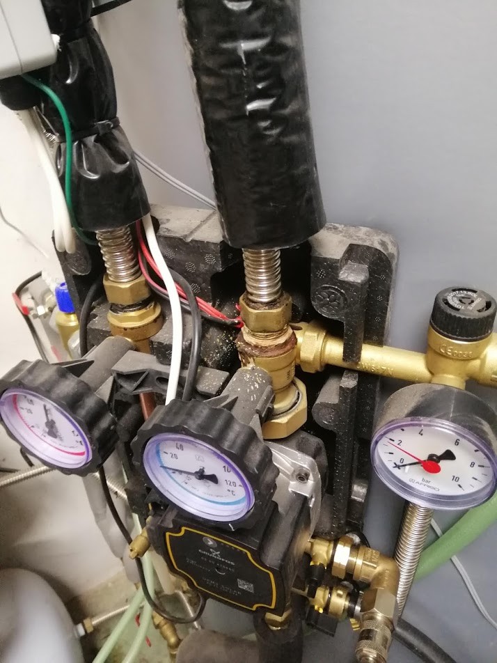 - V půdním prostoru jsou instalovány 2 směšovací ventily, které chodí majitel ovládat dle intuice a v závislosti na počasí.