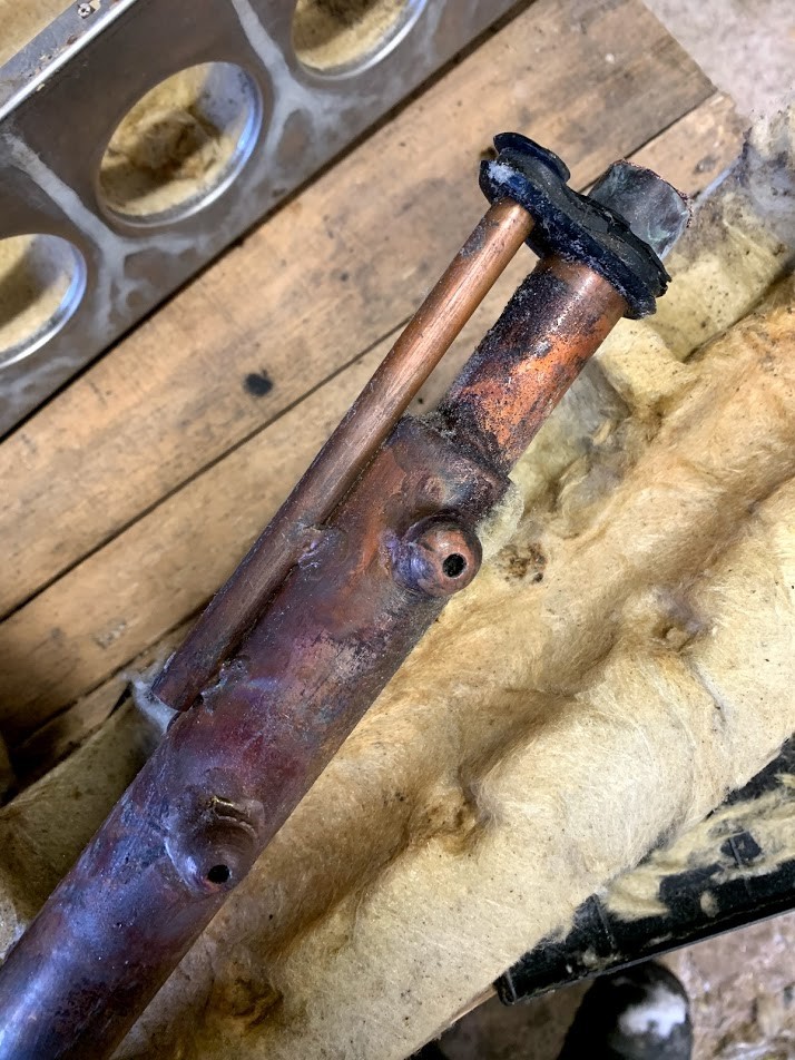 Takže: Obal, plastový boční kryt, jímka na čidlo, vnitřní měděná trubice a tepelná izolace.