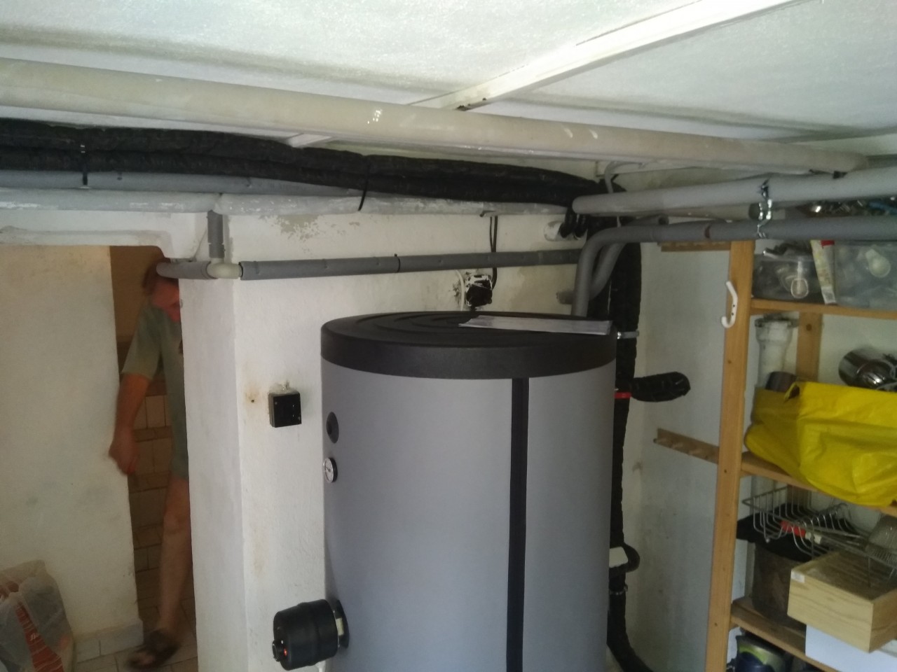 V roce 2018 jsme realizovali profesionální řešení ohřevu vody na rekreačním objektu, chatě u Benešova. Zákazník měl elektrický dosluhující bojler. Když už se měl měnit, vzal to pěkně od podlahy a rozhodl se pro komfortní řešení ohřevu solárním systémem s nuceným oběhem. Instalovali jsme rovnou 300 l bojler s 2 solárními kolektory Immo Logis GSS 250. Taková velikost bojleru na chatě zajistí pohodlně i několik van s horkou vodou.