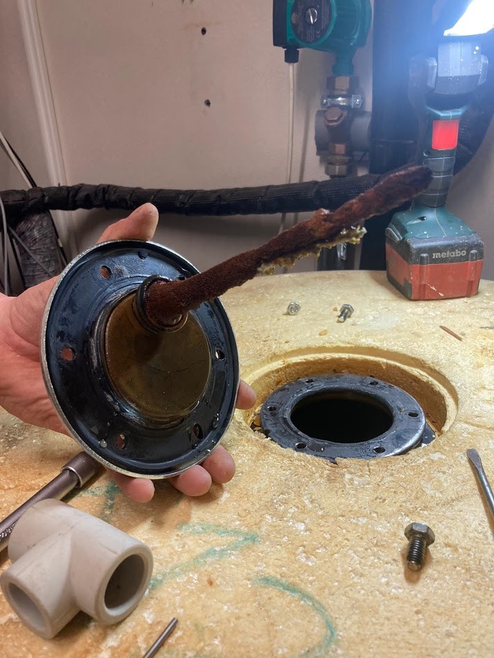 - Na obrázku si ukážeme jak vypadá použitá hořčíková anoda po 7 letech, kdy byl solární zásobník připojen na řád ze studny. Je zřejmé, že k výměně mohlo dojít i o několik let dřív, ale buďme rádi za to, že ji majitel nechal vůbec vyměnit. V tento okamžik si prodloužil životnost bojleru i o několik dalších let.