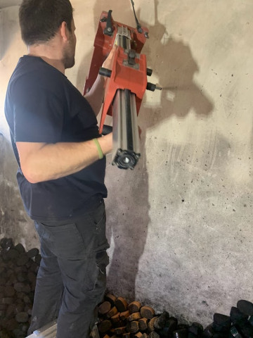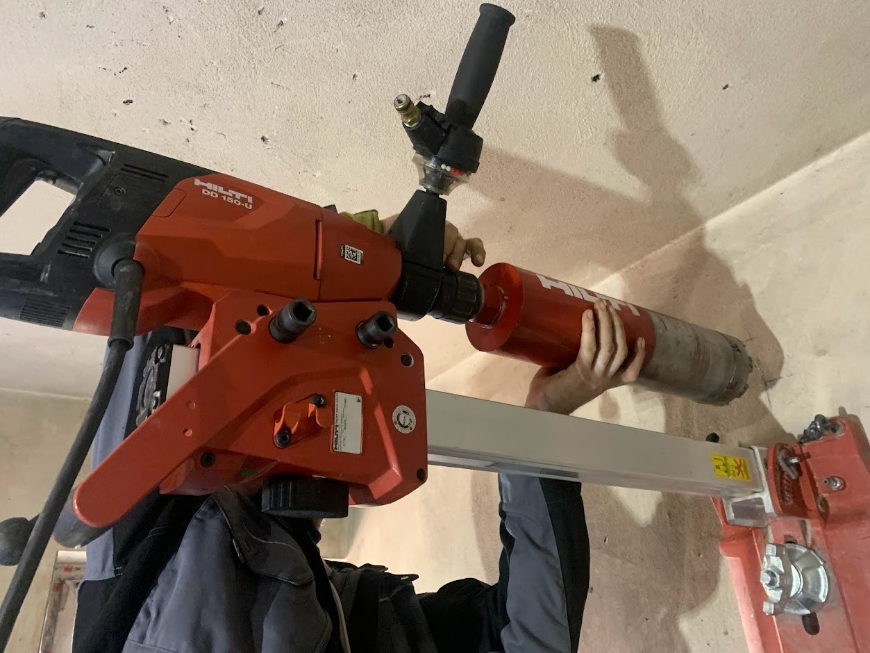 - Na takové situace jsme připraveni a vybaveni diamantovými jádrovými vrtačkami Hilti, kdy vrtáme otvory od 55mm - 300mm. Vrtání těmito stroji je velmi pohodlné, snadné a vrt je vždy perfektní, bez jakéhokoliv poničení přilehlých míst. Vrtání diamantovými korunkami vyžaduje účinné vodní chlazení, které je z místa vrtu efektivně odsáváno.
