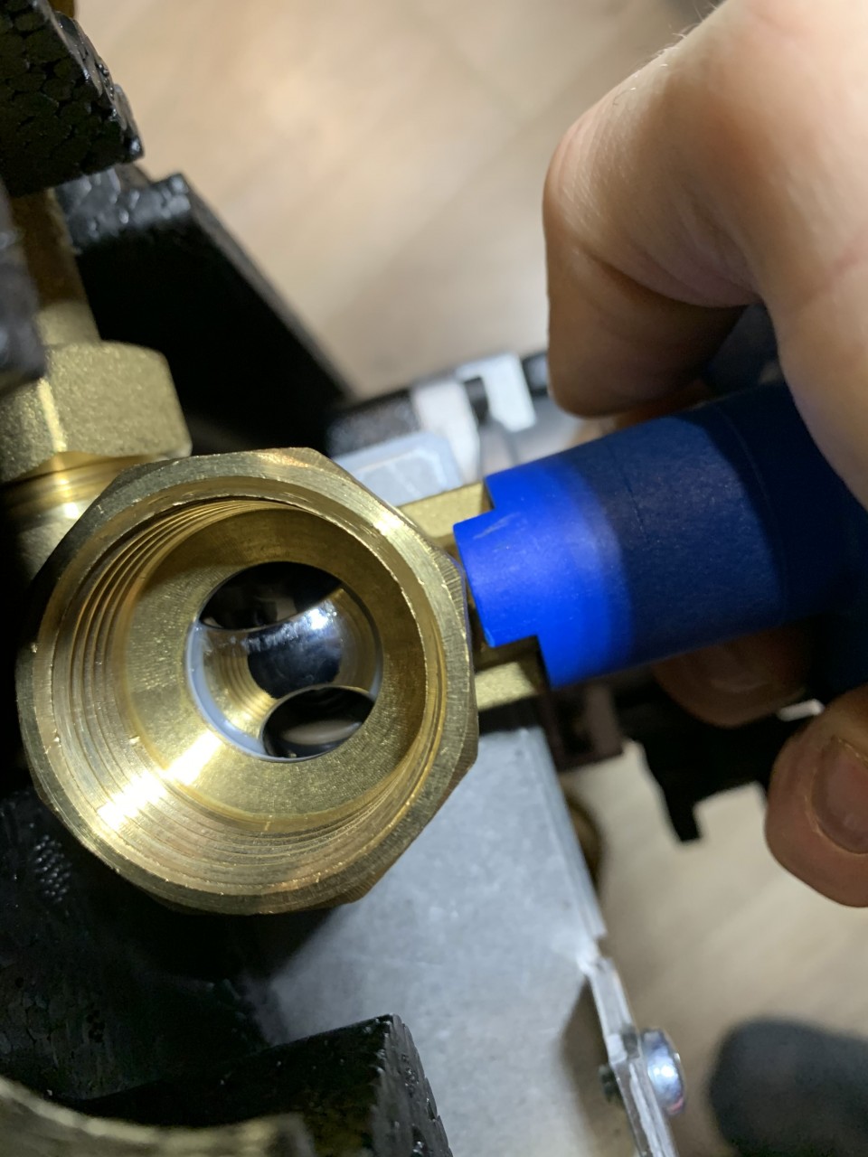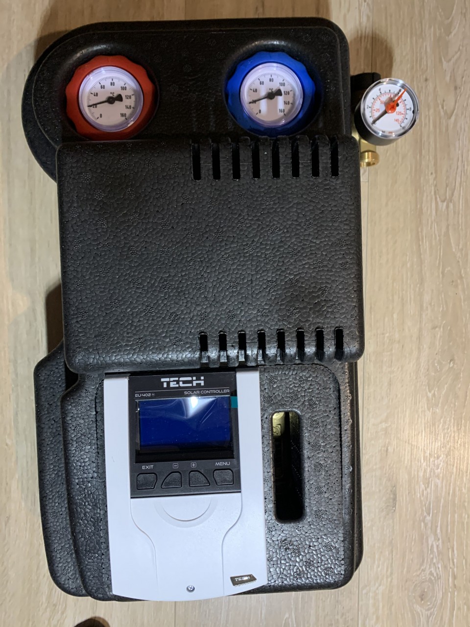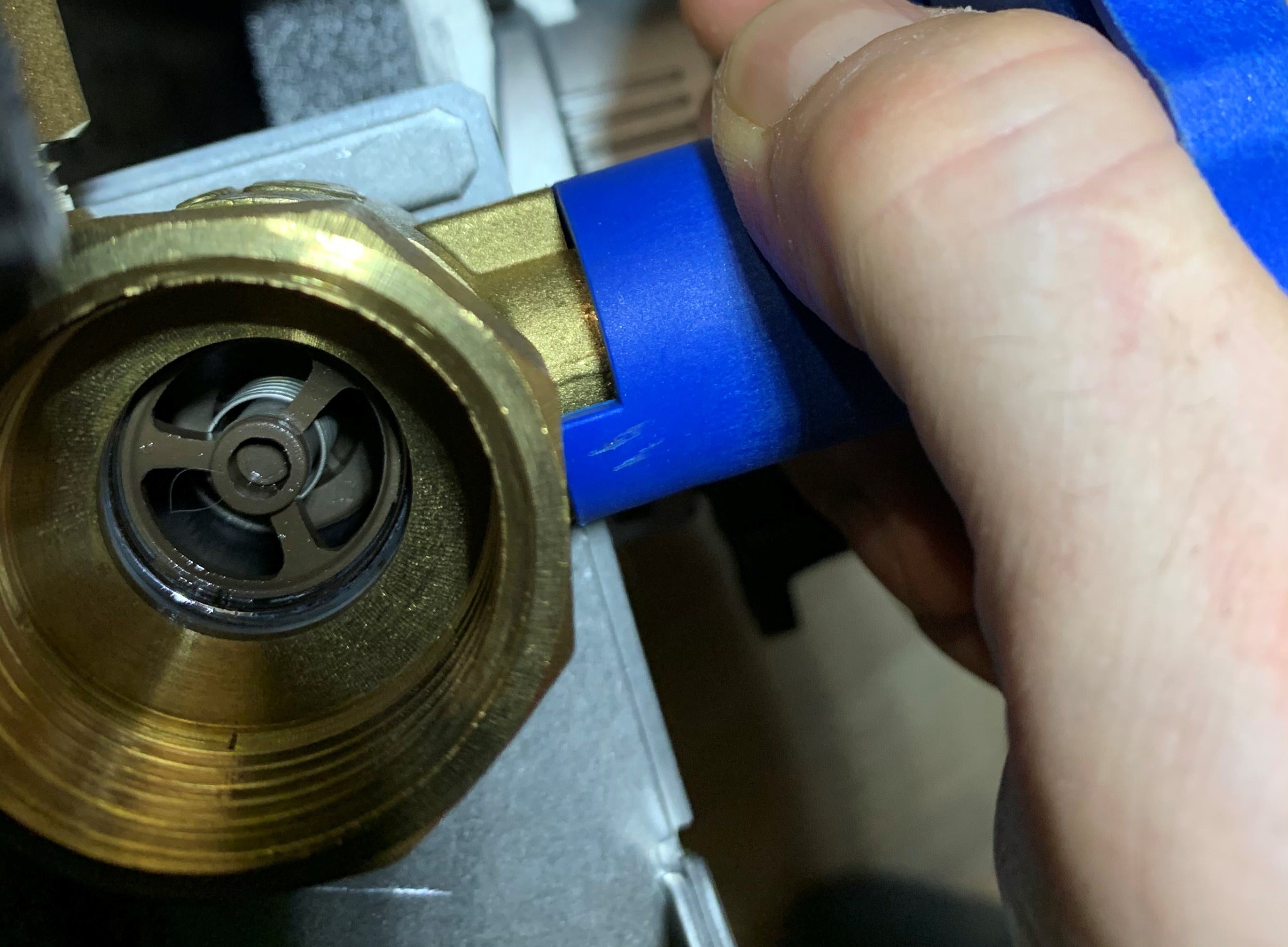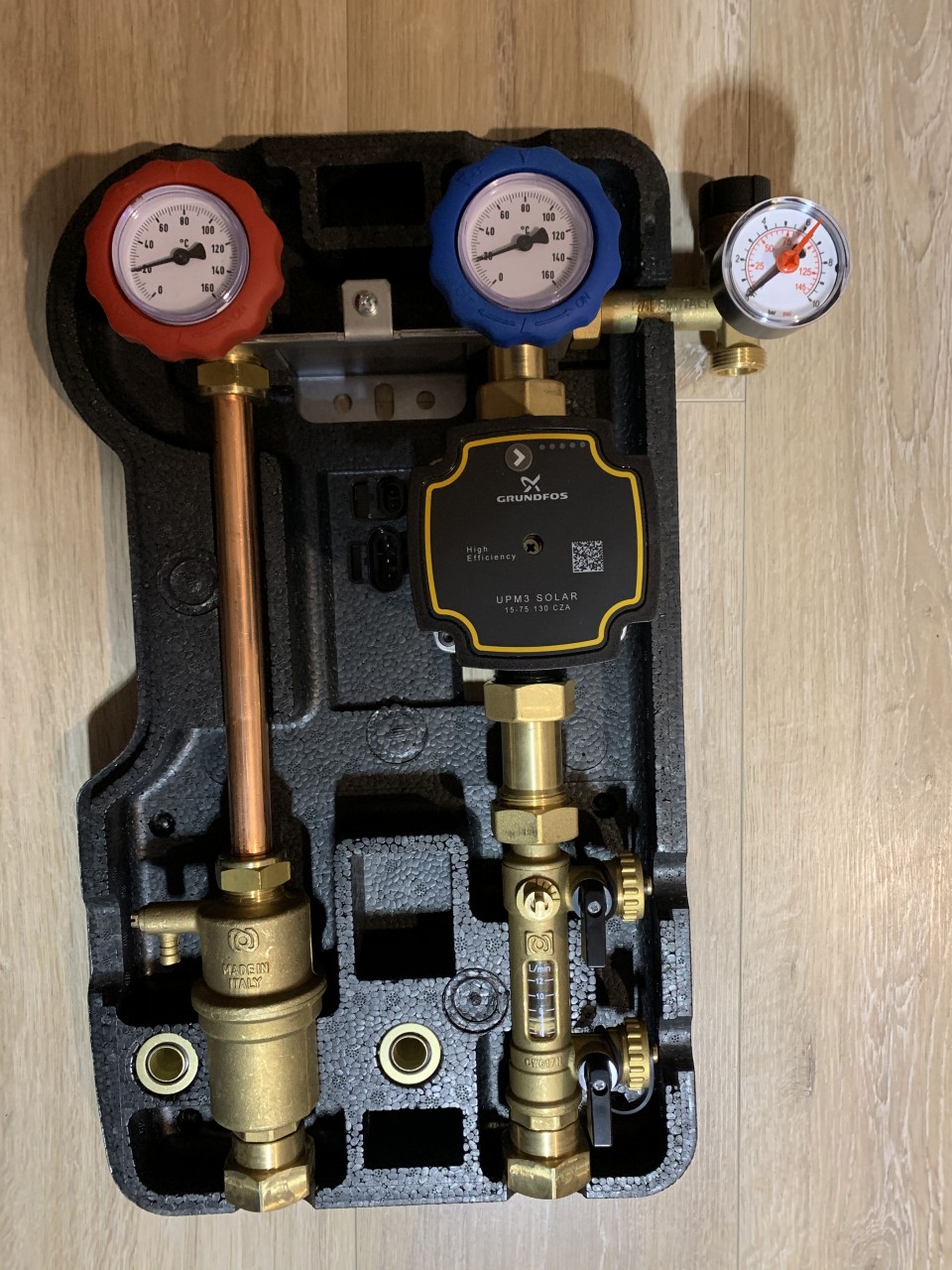 Pohled na čerpadlovou jednotku a do zpětné klapky solárního systému